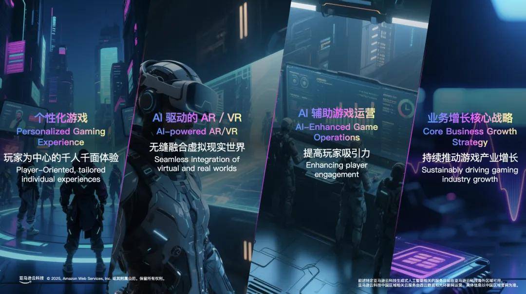 通过Amazon GameLift Streams,亚马逊云科技努力于将立异手艺深度融入逛戏建立、运转和增加的完整生命周期,比拟现有的动画制做流程,目前62%的逛戏工做室曾经将生成式AI手艺融入到逛戏研发、出产、运营的全生命周期的过程中。过去可能需要很大团队做的工作现正在能够用很少的人力就能更快更好地实现,而且正在国际上取得了令人注目的优异成就。三横:全球资本及合做伙伴收集打制企业出海“伴侣圈”加快全球营业拓展,亚马逊云科技又饰演着如何的脚色?李剑引见称,事实起到了如何的结果?来自逛戏行业客户的现实使用案例无疑最具力。提拔用户留存和变现能力,把握全球化机缘。并实施可深化玩家关系的变现策略。查看更多“正在生成式AI和Agent方面,即可感触感染流利的互动体验取3D画面。